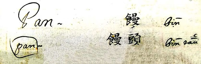 西班牙人在1541年抵达菲律宾时,当地已有一个不小的华人社区,这些居民多数来自福建的漳州府。西班牙人在菲律宾留下一部《西班牙-华语辞典》手稿,由西班牙道明会教士与菲律宾闽南华人于1620年代合作编篡。手稿收录了大约2700个华语词和短语,大部分是生活用语,当然不会忽略面包这个西班牙人的日常主食。在西班牙语“Pan”这个词条下,标注两个华语对应词“馒”和“馒头”。华人原来没有面包这个食品,馒头则是华人传统食物,恰好馒头和面包都是用面粉制成,采用“馒头”作为借词来指称面包,易于理解,不另造新词,是一种权宜的选择。