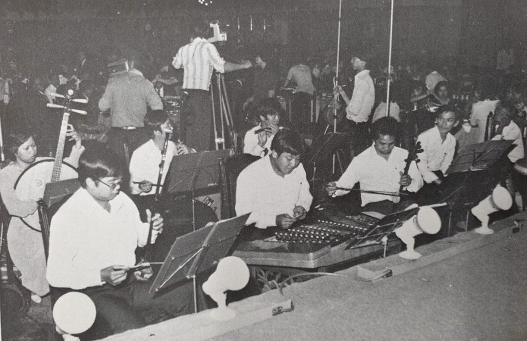 In the 1980s, China began to open up. During this period of reform, many people returned to their home villages to visit family. But for the average Singaporean youth of the time, visiting China was politically fraught. Despite the challenges, Han was eager to seek the birthplace of Hainanese opera. His thirst for knowledge impressed the president of the Kheng Chew Junior Association, who eventually helped Han secure an invitation from China’s Hainan Cultural Bureau to conduct field studies in Hainan. During the trip, Han met with famous opera artists such as the dan (female lead role) performer Wang Yingrong (1939–2011), Lin Daoxiu (1924–2000), who was known as the “Mei Lanfang of Hainan”, and the composer Zhang Bashan (1940–2021). 5 Han also seized the opportunity to watch Hainanese opera in its native environment and visit drama schools to learn more about their teaching methodology. After his time in Hainan, Han became convinced that Hainanese opera required a fixed melody and score in order to be more easily transmissible. This also catalysed the 1989 performance of Happy Reunion in Singapore, where Chinese directors Huang Liangdong and Mo Aihua were invited to collaborate with Han, who directed the music and served as lead percussionist.