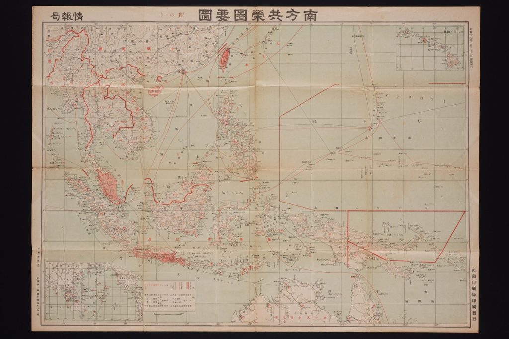 二战期间日本绘制的东南亚与澳洲北部地图,1942年。(新加坡国家博物馆馆藏,新加坡国家文物局提供)