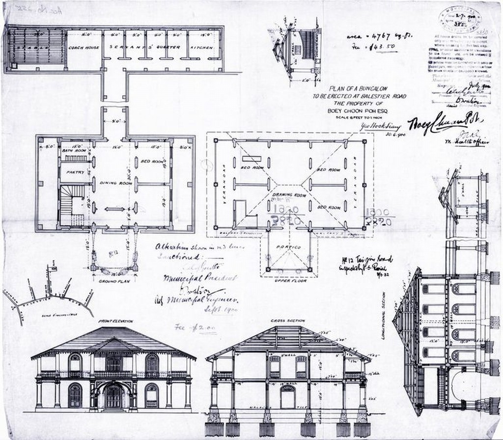 明珍庐建筑图,1900年。(新加坡建设局藏品,新加坡国家档案馆提供)