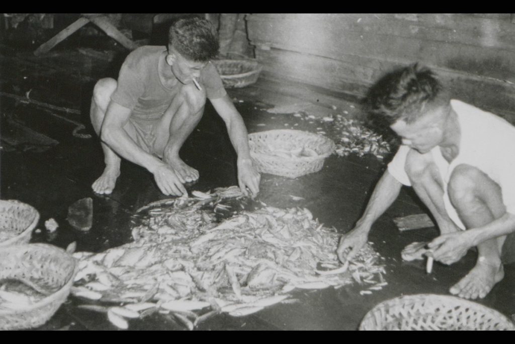 奎笼渔民处理渔货,1960年代。(新加坡原产局藏品,新加坡国家档案馆提供)