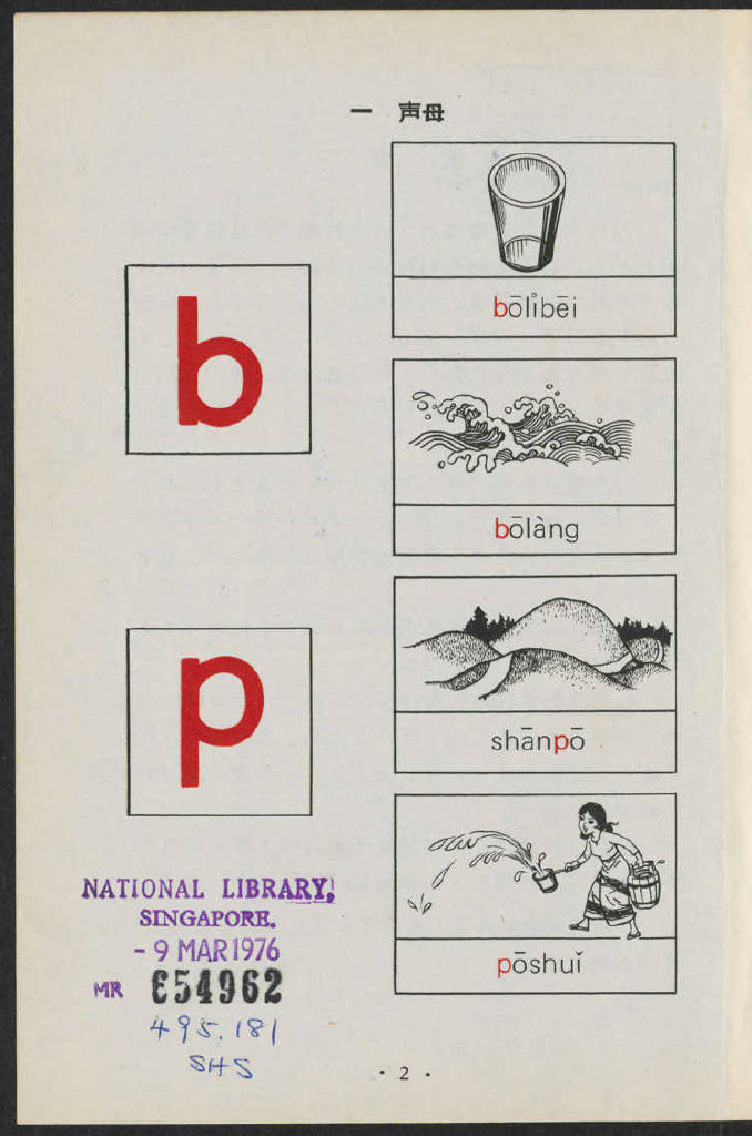 《汉语拼音读本》(新加坡:上海书局,1974),页2。(取自新加坡国家图书馆网站)