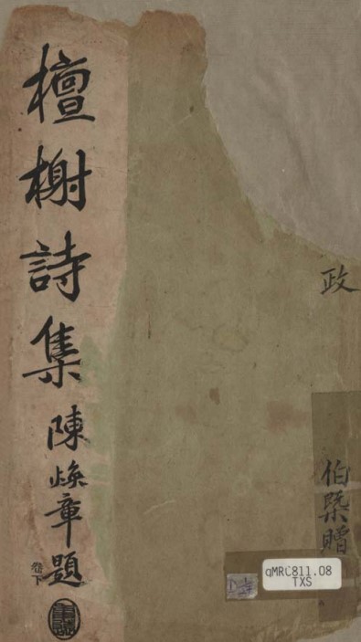 《檀榭诗集》封面书影,1926年。(取自新加坡国家图书馆网站)